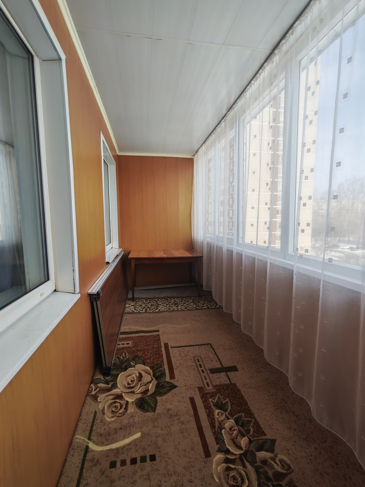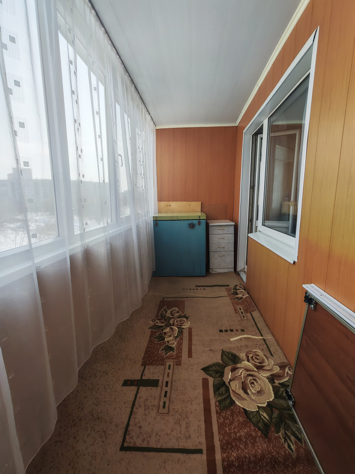 Большая, светлая комната, здесь царит атмосфера спокойствия и домашнего тепла. Состояние квартиры обычное. Окна выходят на южную и восточную стороны света. Главная жемчужина квартиры — большая светлая лоджия, куда каждое утро заглядывает солнце, создавая ощущение бесконечного простора и свободы.